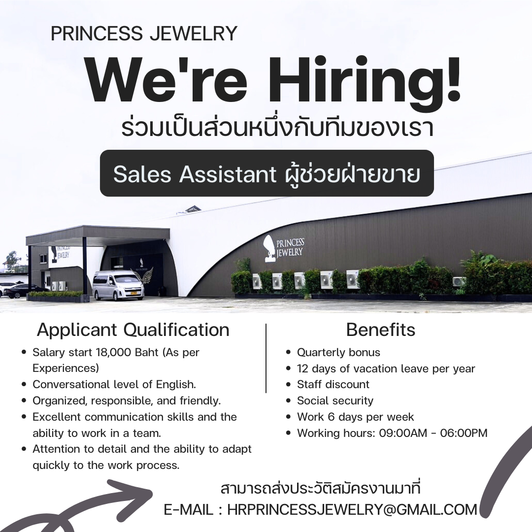 สนใจร่วมงานกับเรา สามารถส่ง Resume มาที่ [email protected] ยินดีต้อนรับทุกท่านค่ะ