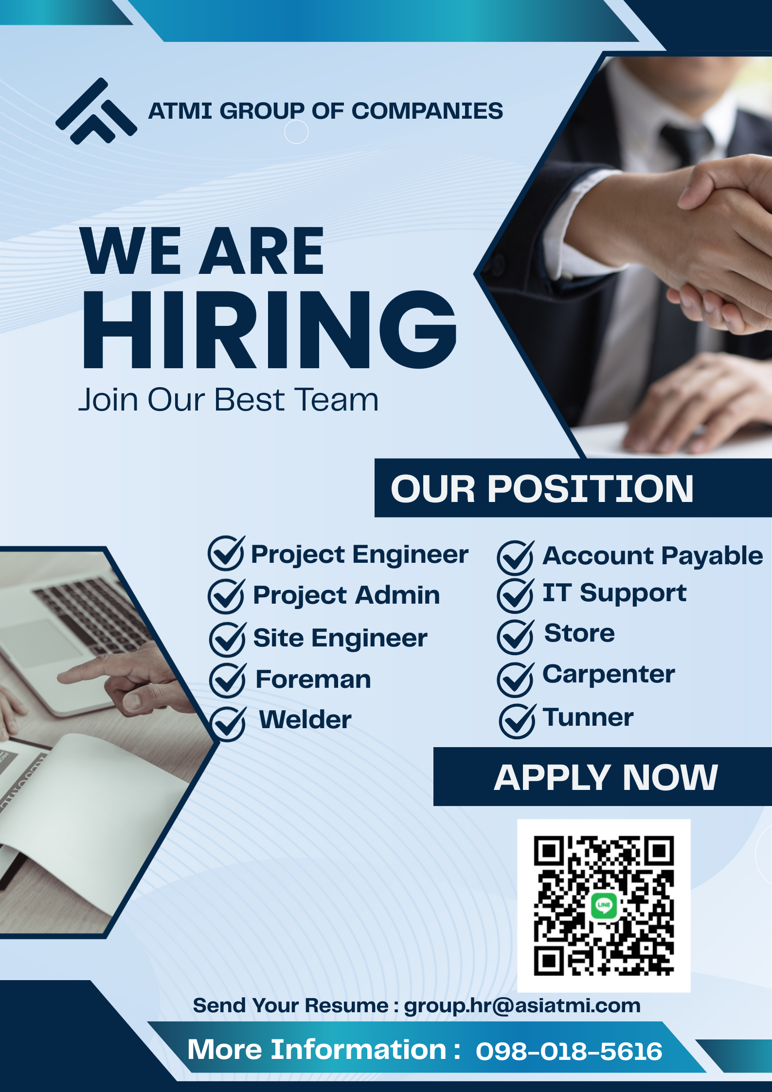 Contact for more information at HR (Joy or Ann) : 098-018-5616
