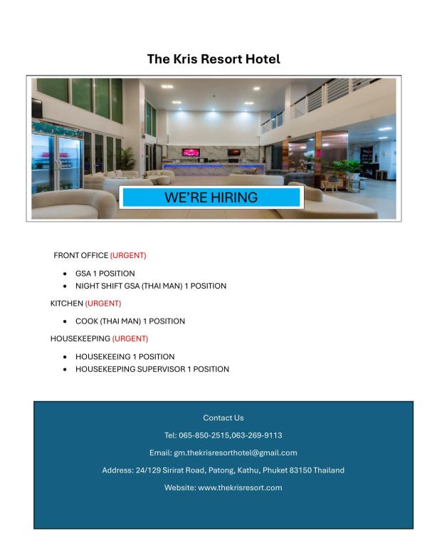 กรุณาส่งประวัติส่วนตัวมาที่ [email protected] หากท่านผ่านการพิจารณาเราจะติดต่อไปเพื่อนัดสัมภาษณ์