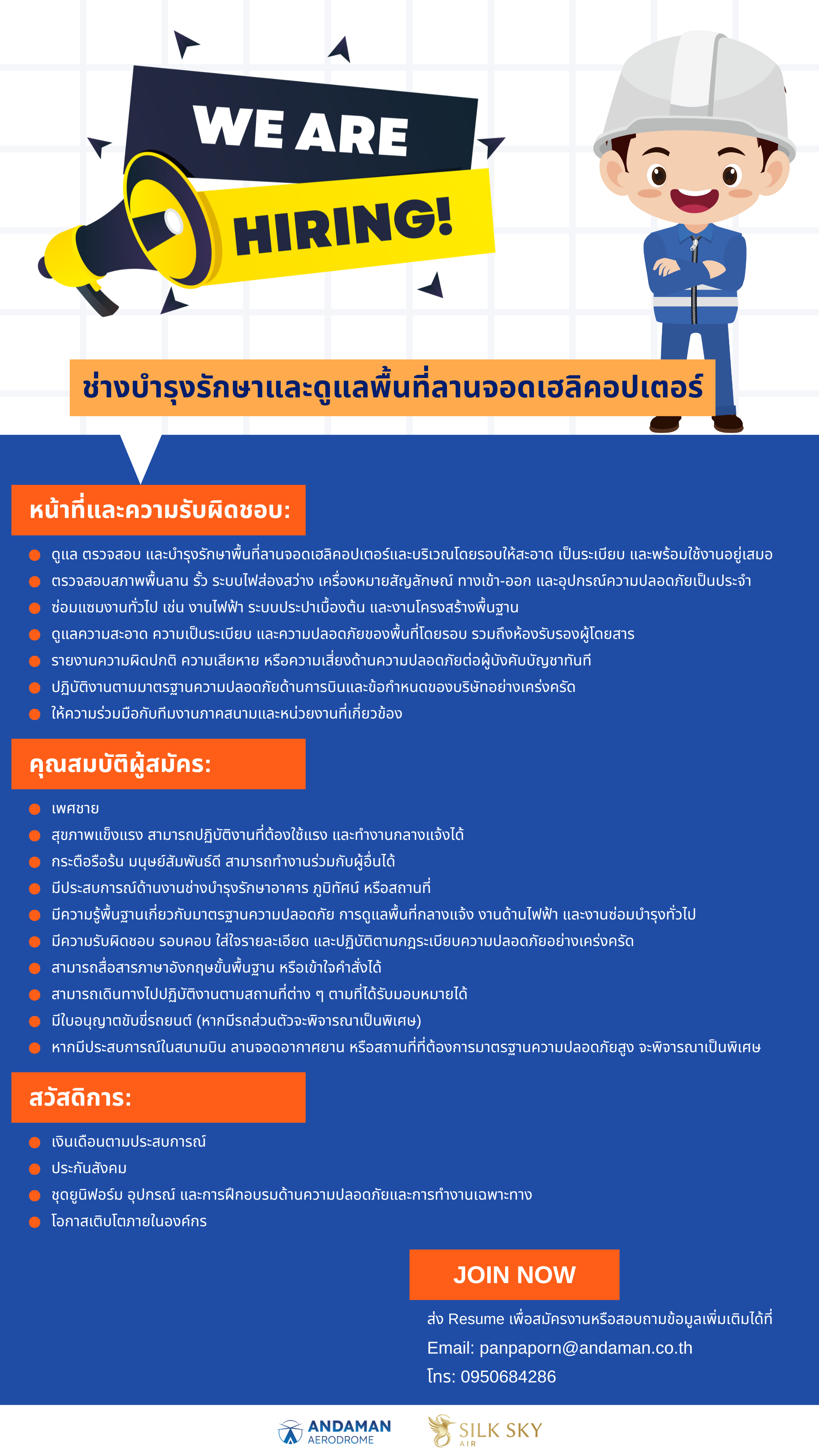 ตำแหน่ง: ช่างบำรุงรักษาและดูแลพื้นที่ลานจอดเฮลิคอปเตอร์