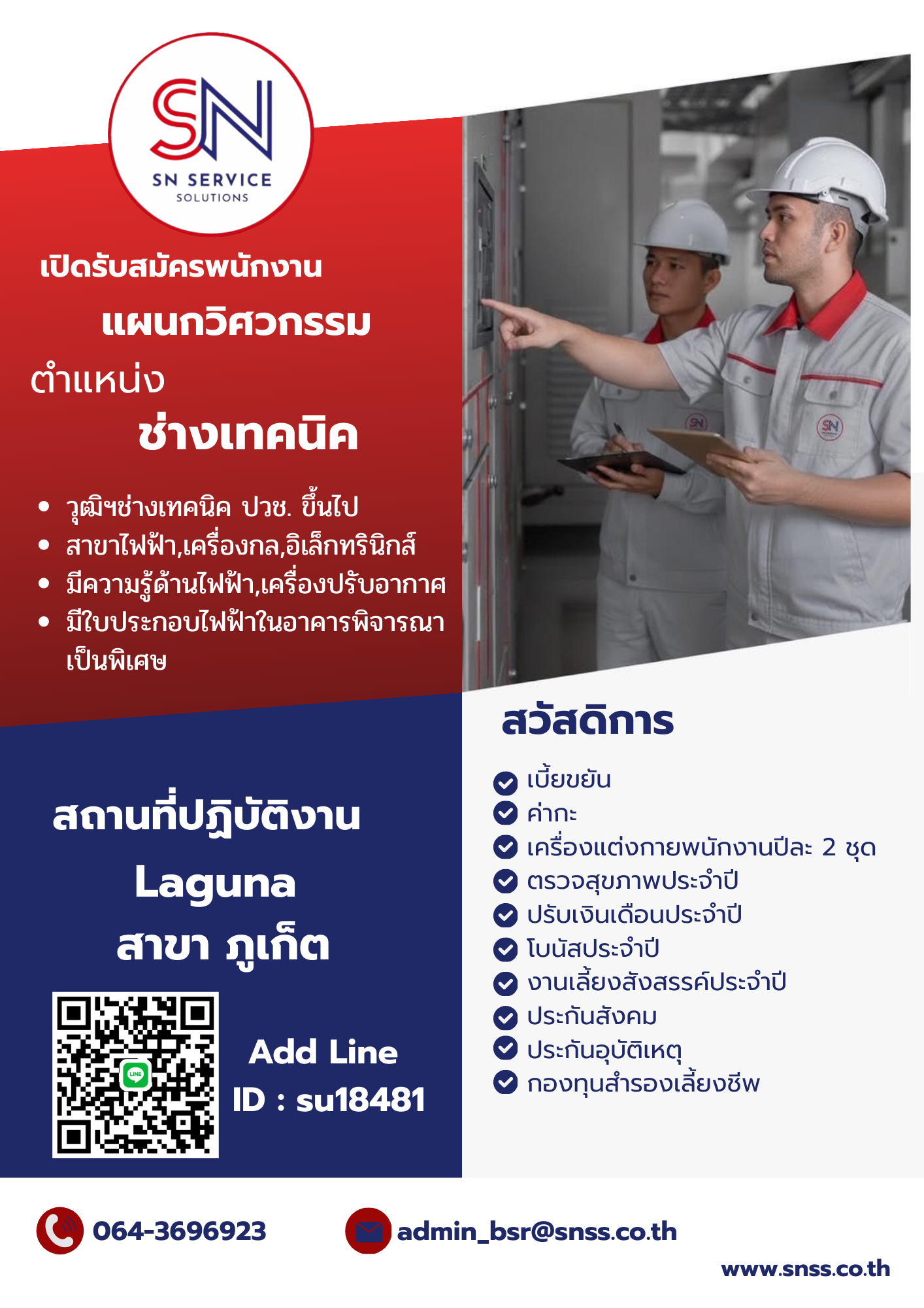 - ช่างเทคนิค หลายอัตรา (เพศชาย อายุ 25-35 ปี)