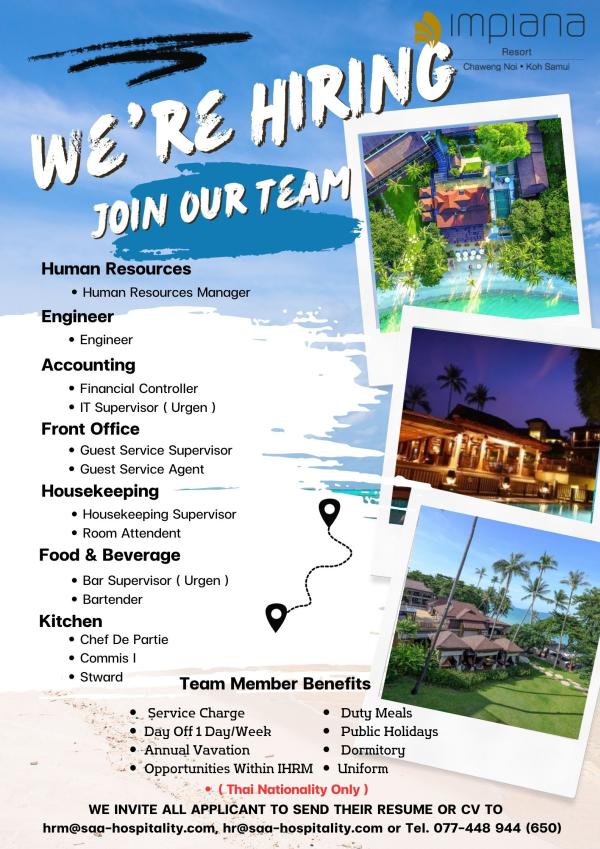 สนใจร่วมงานกับเรา สามารถส่ง Resume มาที่ [email protected] ยินดีต้อนรับทุกท่านค่ะ