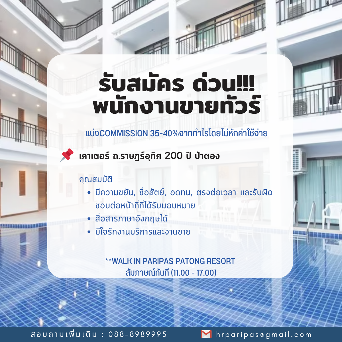 ส่งประวัติส่วนตัวพร้อมรูปถ่ายปัจจุบันเข้ามาที่ [email protected] *ยินดีรับผู้ไม่มีประสบการณ์*