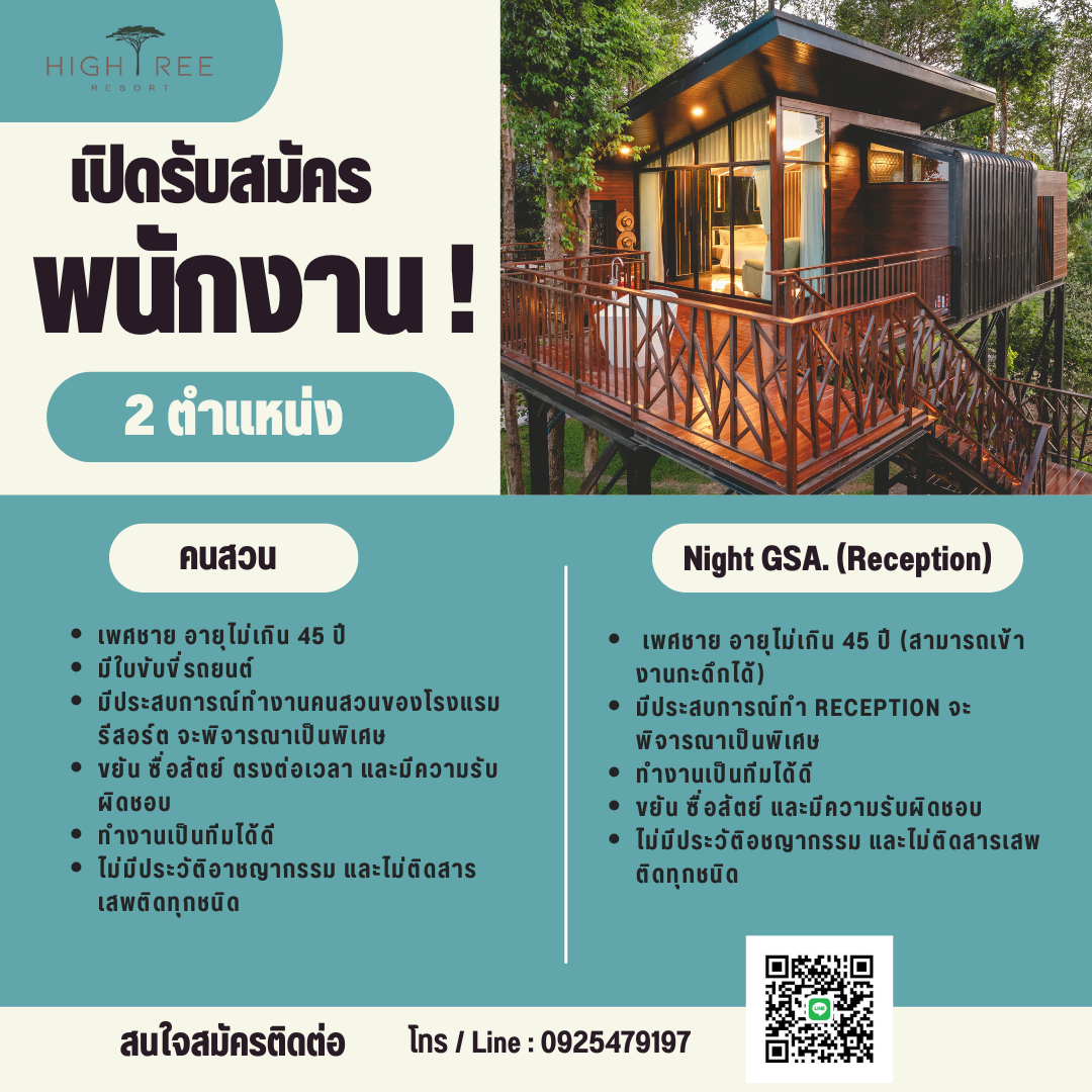 High Tree Resort กำลังมองหาคนที่มีใจรักงานบริการ มาร่วมเป็นส่วนหนึ่งของทีม