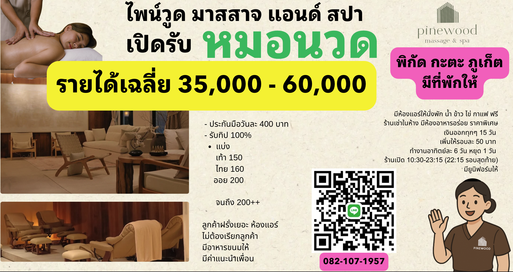 เปิดรับ หมอนวด รายได้เฉลี่ย 35,000 - 60,000