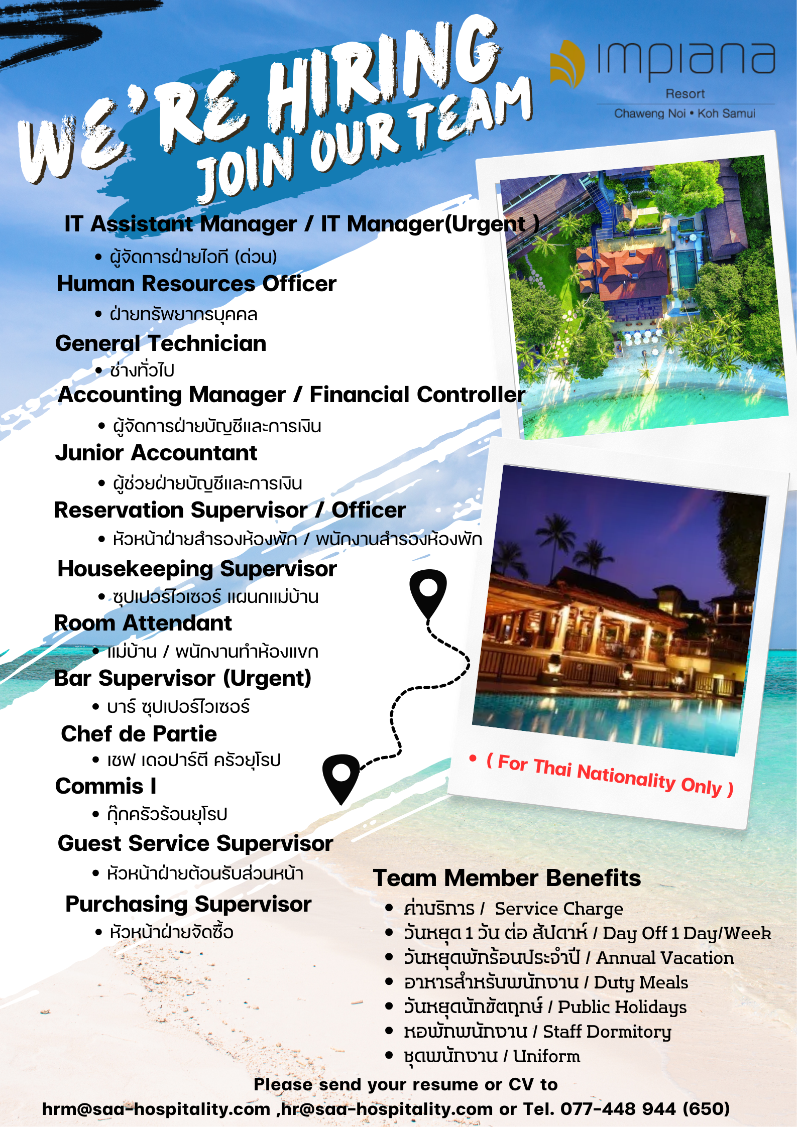 กรุณาส่งประวัติส่วนตัวมาที่ [email protected] หากท่านผ่านการพิจารณาเราจะติดต่อไปเพื่อนัดสัมภาษณ์