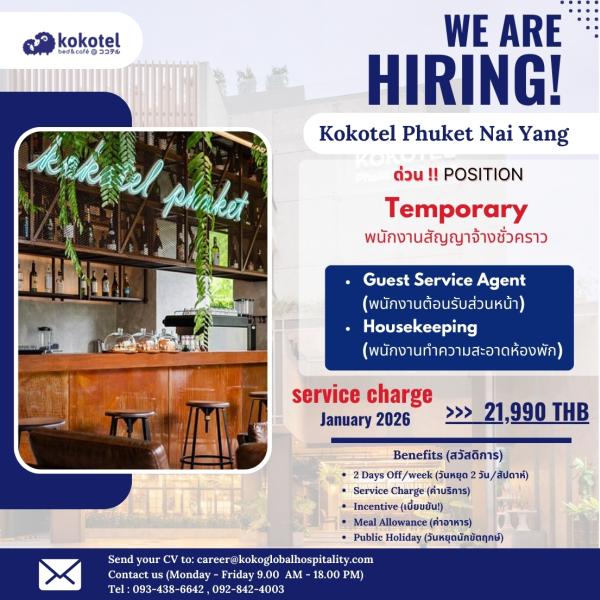 • Guest Service Agent (พนักงานต้อนรับส่วนหน้า)