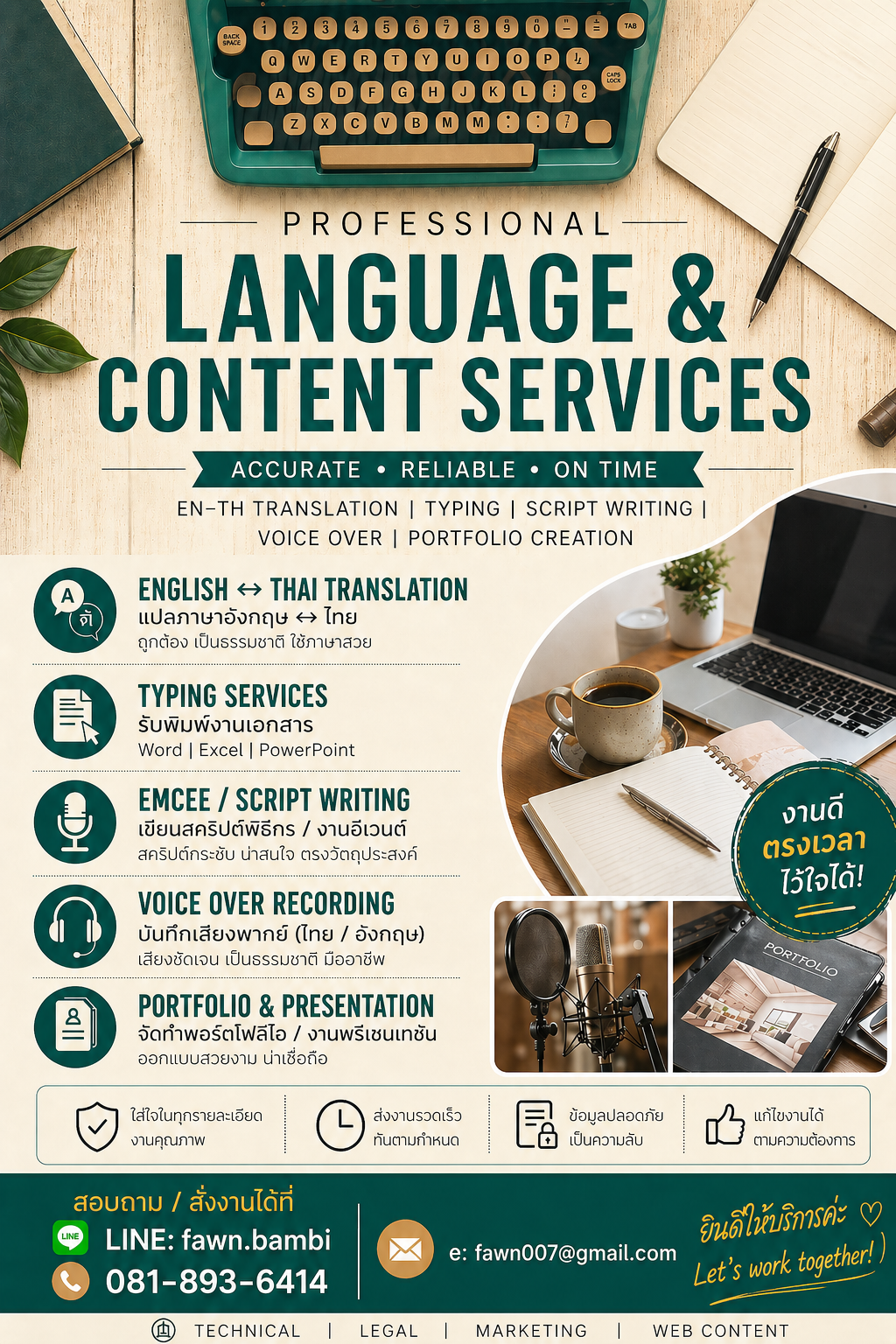 บริการฟรีแลนซ์ด้านภาษาและคอนเทนต์ (ไทย–อังกฤษ)