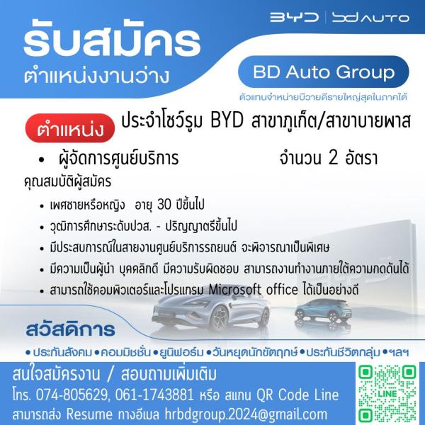 กรุณาส่งประวัติส่วนตัวมาที่ [email protected] หากท่านผ่านการพิจารณาเราจะติดต่อไปเพื่อนัดสัมภาษณ์
